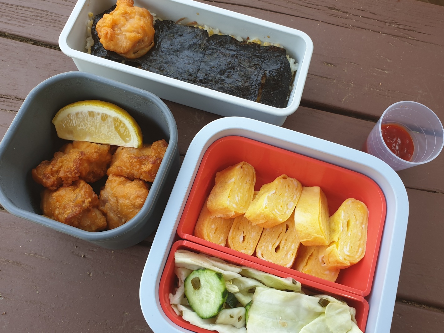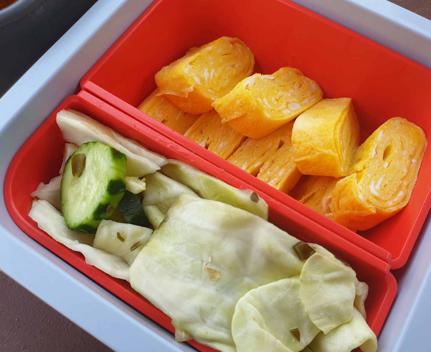 계란말이와 야채절임까지 추가하니 그럴듯한 도시락이 되었다.