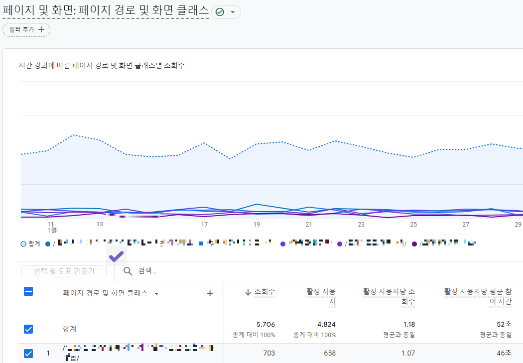 1. 보고서 > 수명 주기 > 참여도 > 페이지 및 화면 메뉴로 들어간다.