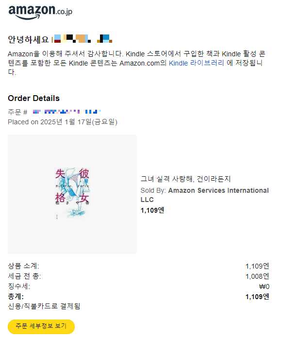그다음 아마존 재팬에 들어가서 킨들 책을 구매하면 무사히 완료.