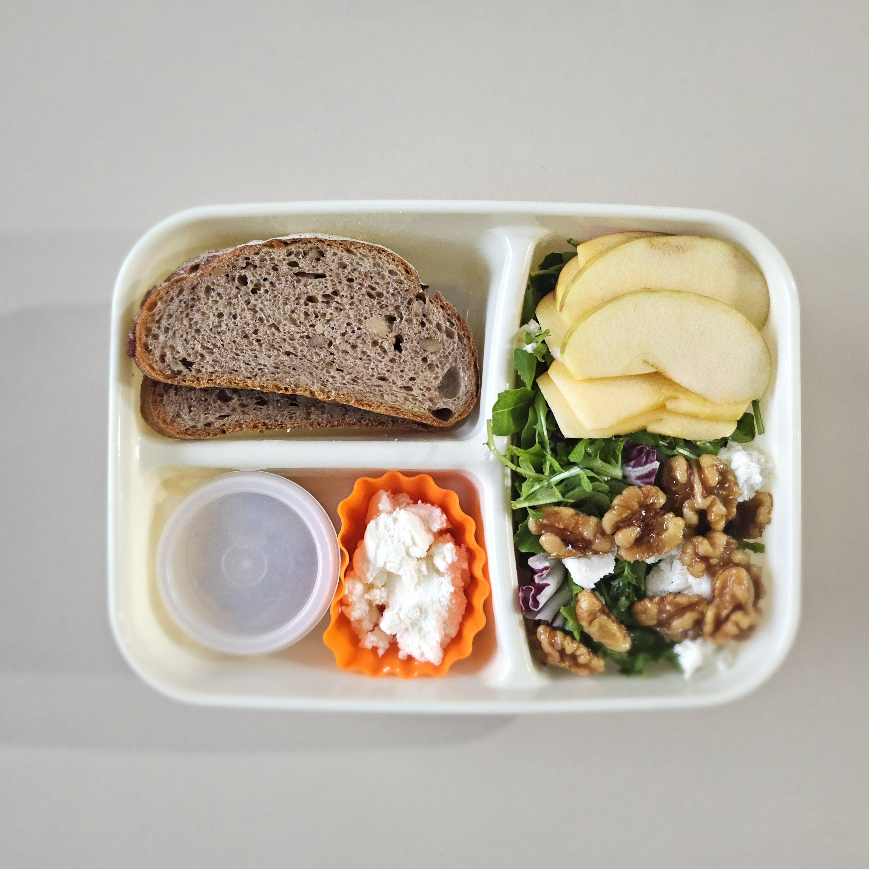 도시락 1: 사과 리코타 치즈 샐러드, 호두 깜빠뉴