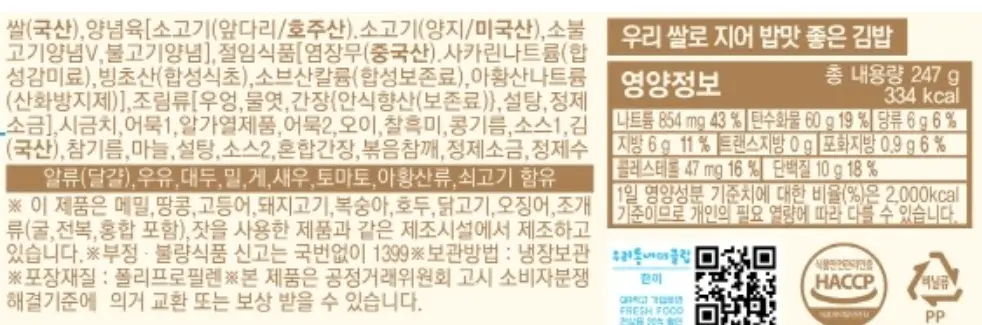혜자로운 소고기김밥 칼로리/영양정보
